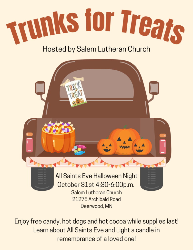 Salem Lutheran Church in Deerwood, MN – a congregation of the Evangelical Lutheran Church in America (ELCA) – is a church alive with vibrant ministries, worship and a commitment to “love and serve God by loving and serving people.” Come as you are but know that the God of Jesus Christ loves you too much to leave you that way. He wants to mold you, shape you, and use you, so that you can make a difference in his name. Come grow with us!  A good place to begin is worship on Sunday mornings.